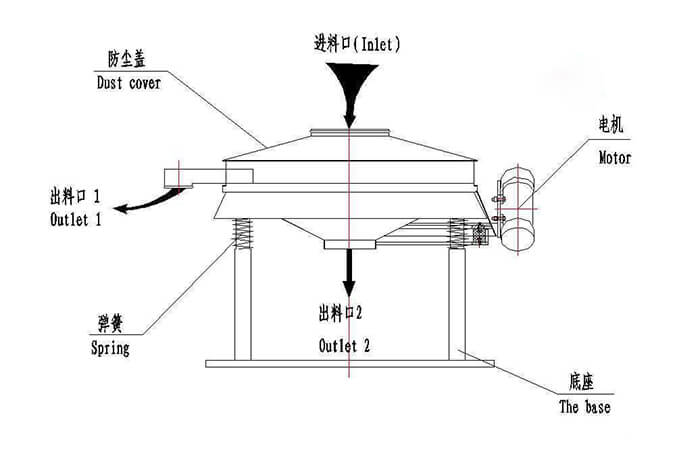 普通旋振篩:裝配一臺立式振動電機(jī),利用立式振動電機(jī)作為激振源,在電機(jī)的帶動下物料在篩框做水平、垂直、傾斜的三維運動。通過不同目數(shù)的篩網(wǎng)過網(wǎng)完成篩分目的,具有自動篩分排料的功能。