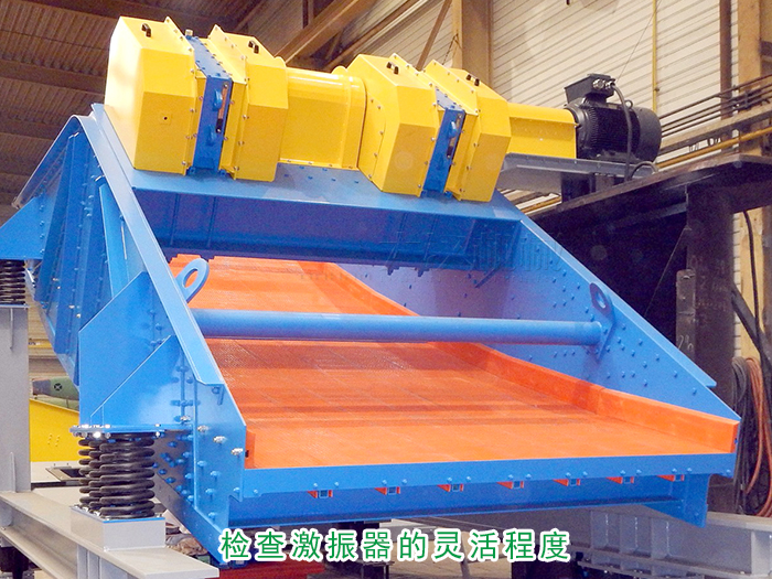 檢查激振器的靈活程度,用手轉動皮帶輪使偏心塊脫離平衡位置后,應出現(xiàn)數(shù)次自由擺動,如篩子到貨后時間超過半年后才安裝,激振器應全部拆下重新清洗加油。