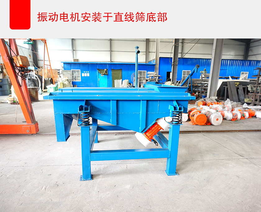 當然,也可以通過減少直線篩的篩框等整體寬度來解決這個問題,但這樣會造成設(shè)備的有效篩分面積減少,導致處理量變小,影響篩分效率、生產(chǎn)進度,所以可以選擇將振動電機安裝在設(shè)備的底部,以此來減少直線篩的整體寬度,這樣即保證了設(shè)備的有效篩分面積,不影響處理量和篩分效率,也大大減小了直線篩設(shè)備的整體寬度。