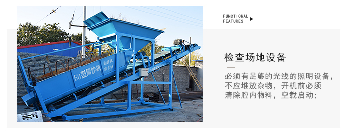 3.篩沙機運轉(zhuǎn)時不可進行修理及清理工作,嚴禁開機檢修;