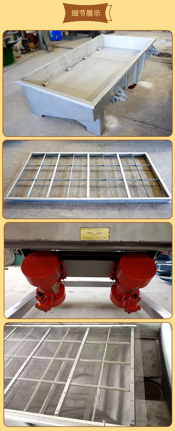 1、篩箱:由數種厚度不同的鋼板焊制而成,具有一定的強度和剛度,是篩機的主要組成部分。