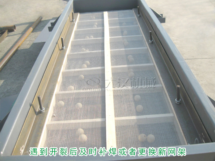 直線振動(dòng)篩的篩網(wǎng)是由網(wǎng)架固定成型,所以應(yīng)該檢查網(wǎng)架是不是有變形或開裂,遇到開裂后及時(shí)補(bǔ)焊或者更換新網(wǎng)架。